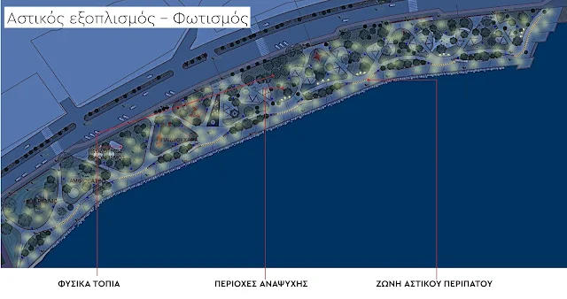 Σημαντική έμφαση δίνεται και στον σύγχρονο αστικό εξοπλισμό και φωτισμό, στοιχεία που θα διασφαλίζουν την άνεση και την ασφάλεια όλων των επισκεπτών.